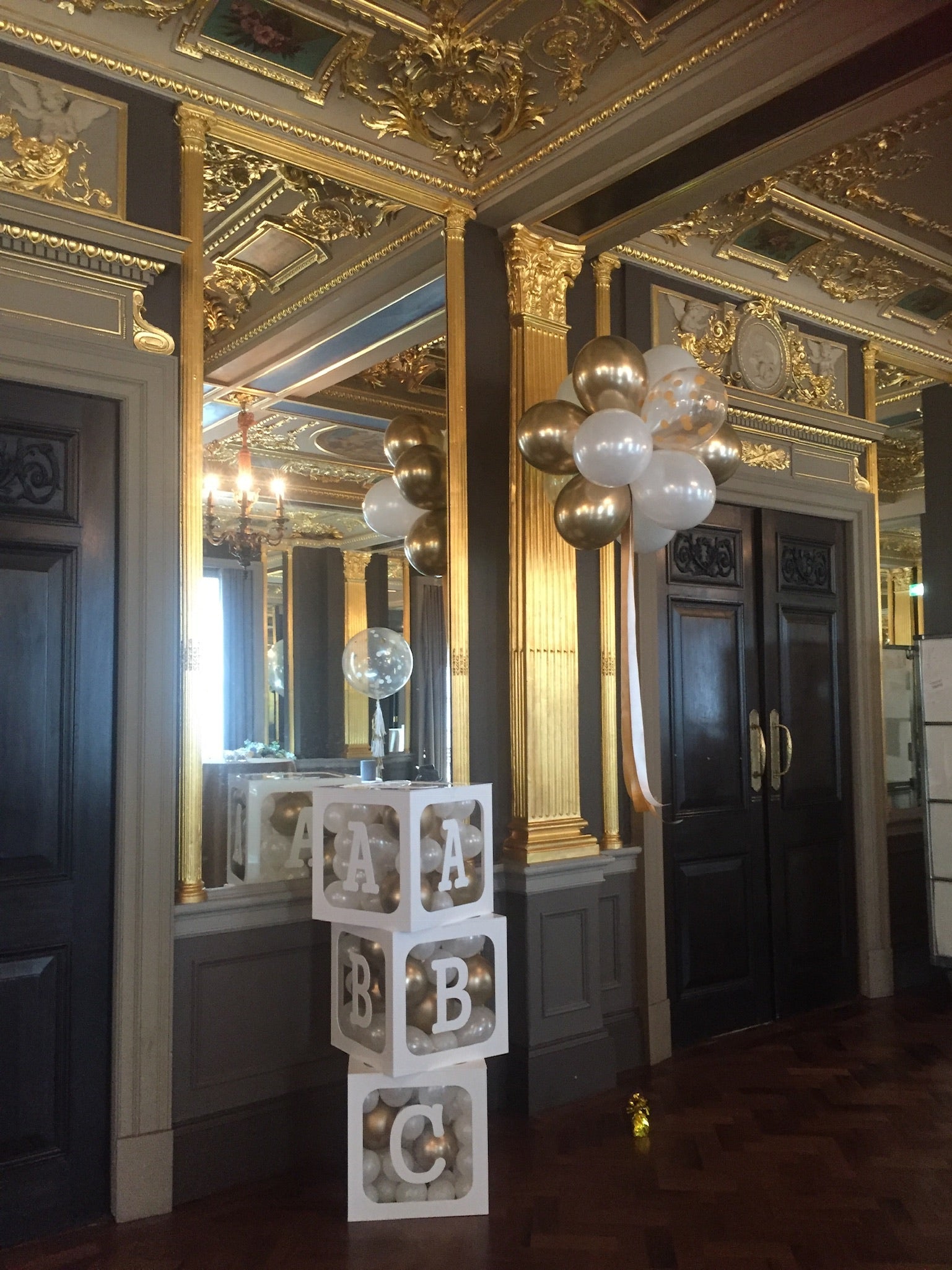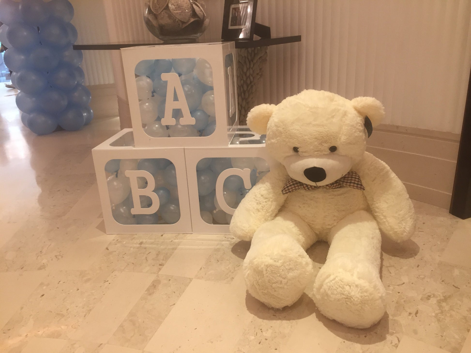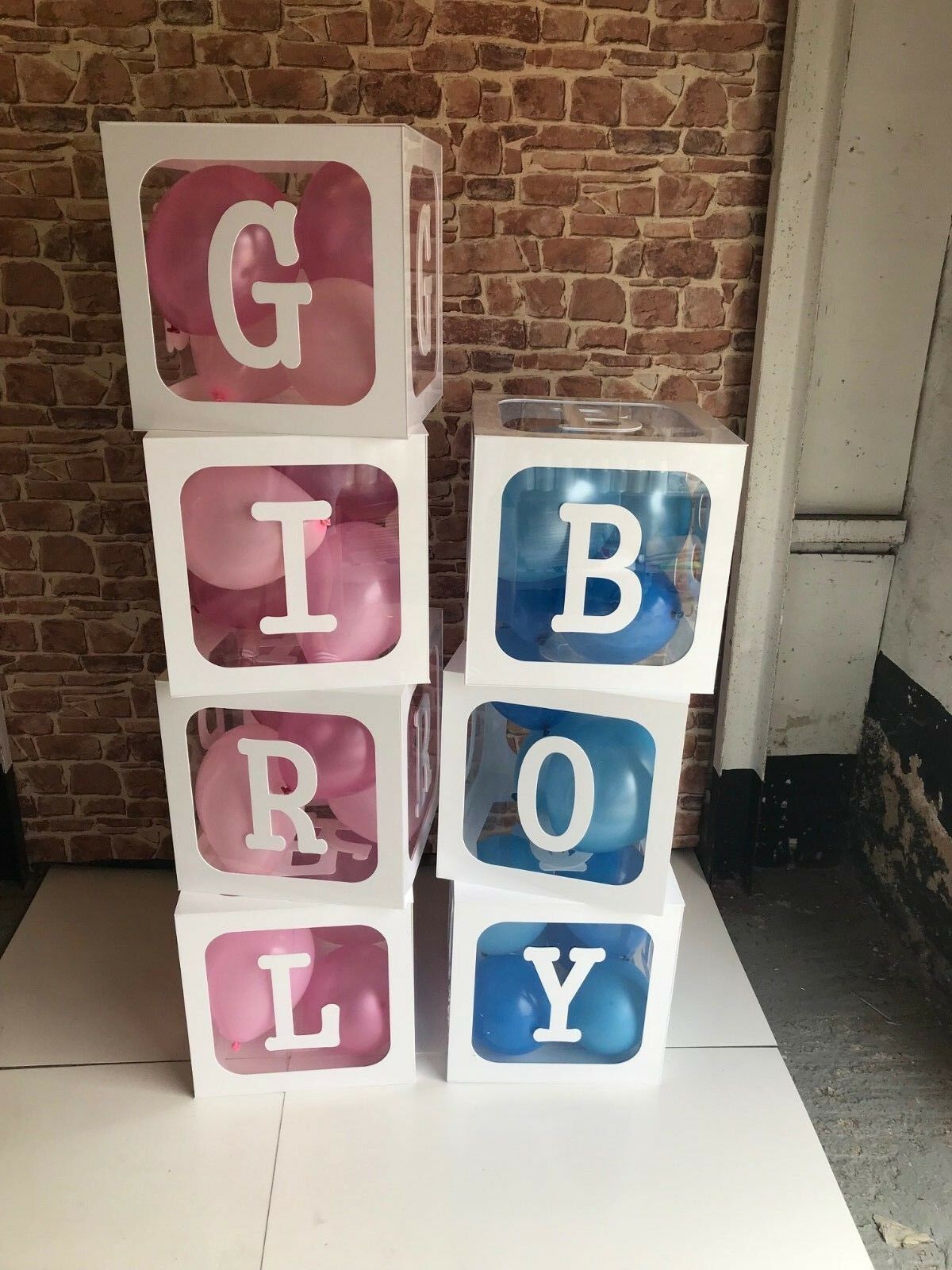 Manufactured in white and clear acrylic, removable lid to insert decorations, balloons, flowers etc. 3 different sizes to choose from.
