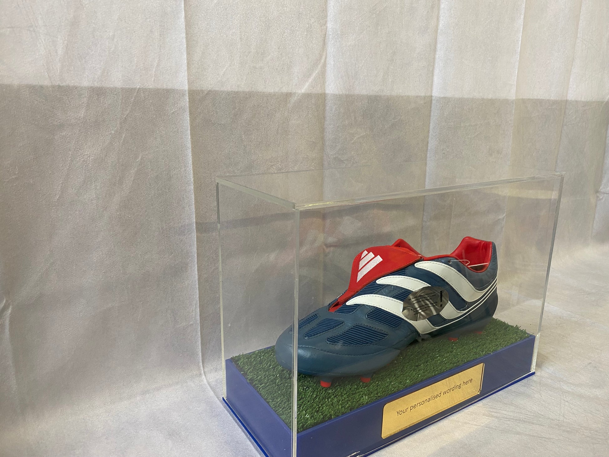 Football Boot Display Case, for a single boot, Personally Engraved Portrait.