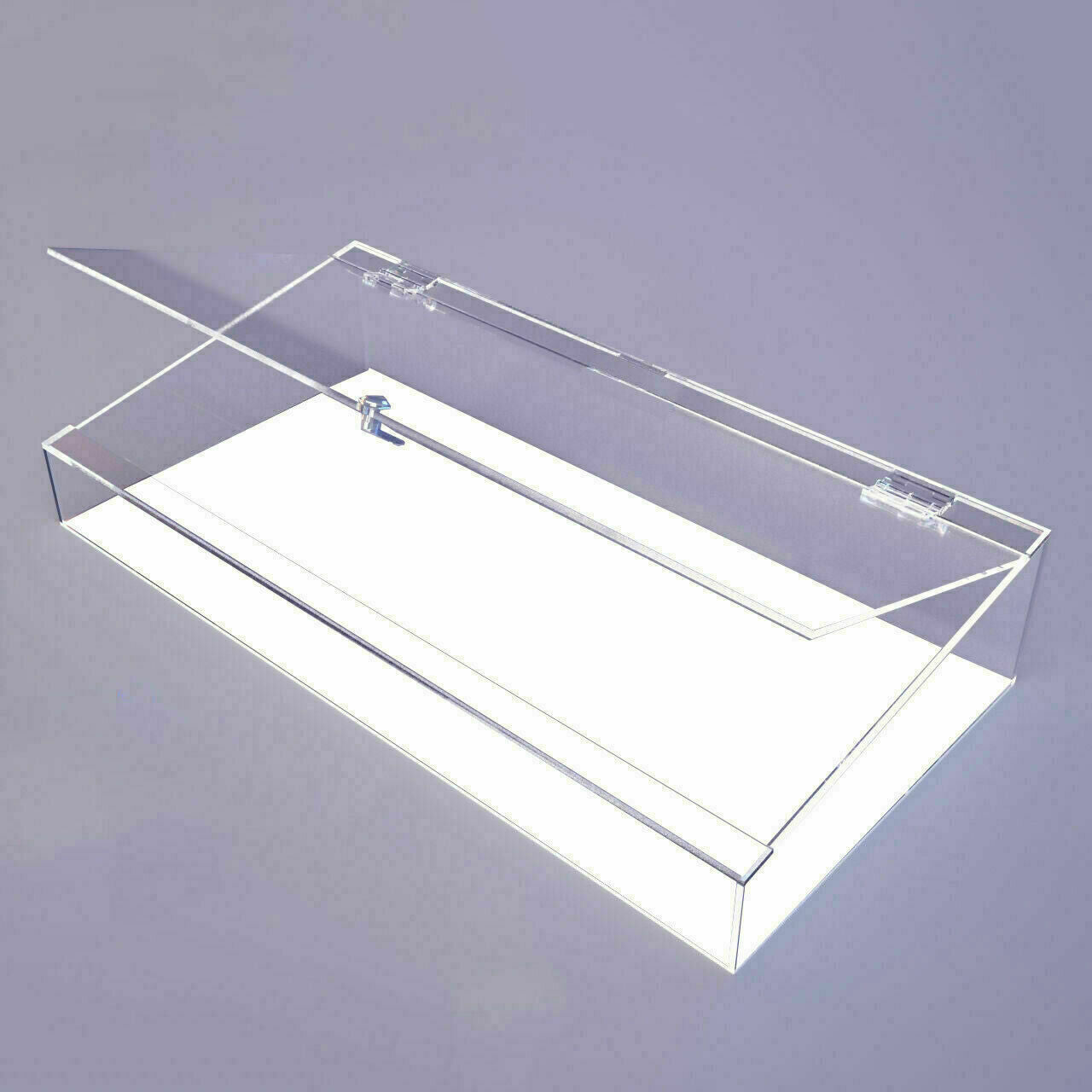 Manufactured from crystal clear Acrylic/Perspex. Lockable display with cam lock plus 2 keys Choice of base finishes Clear, White, Black, Mirror.
