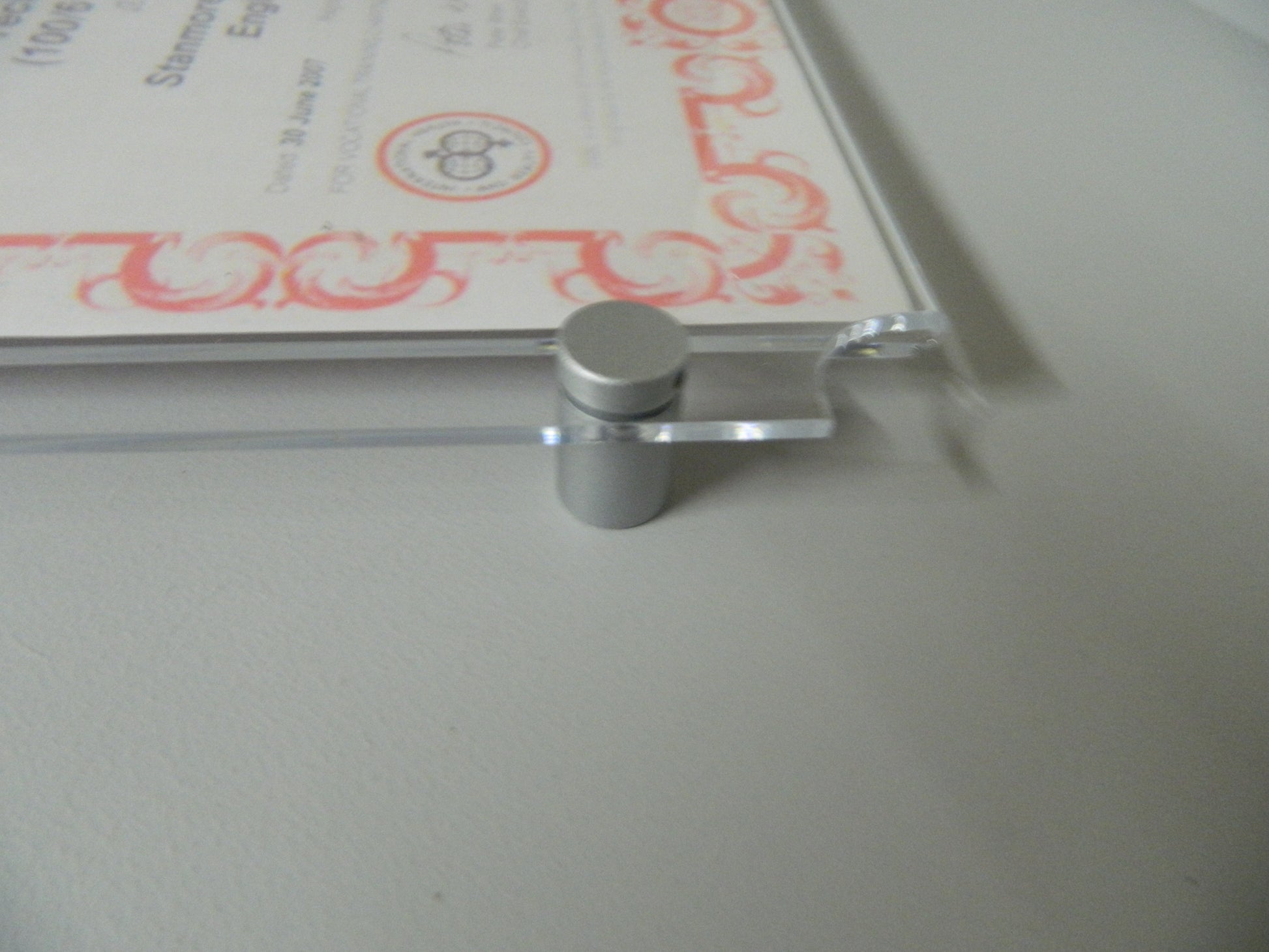 POS certificate holder with stand of wall fixings