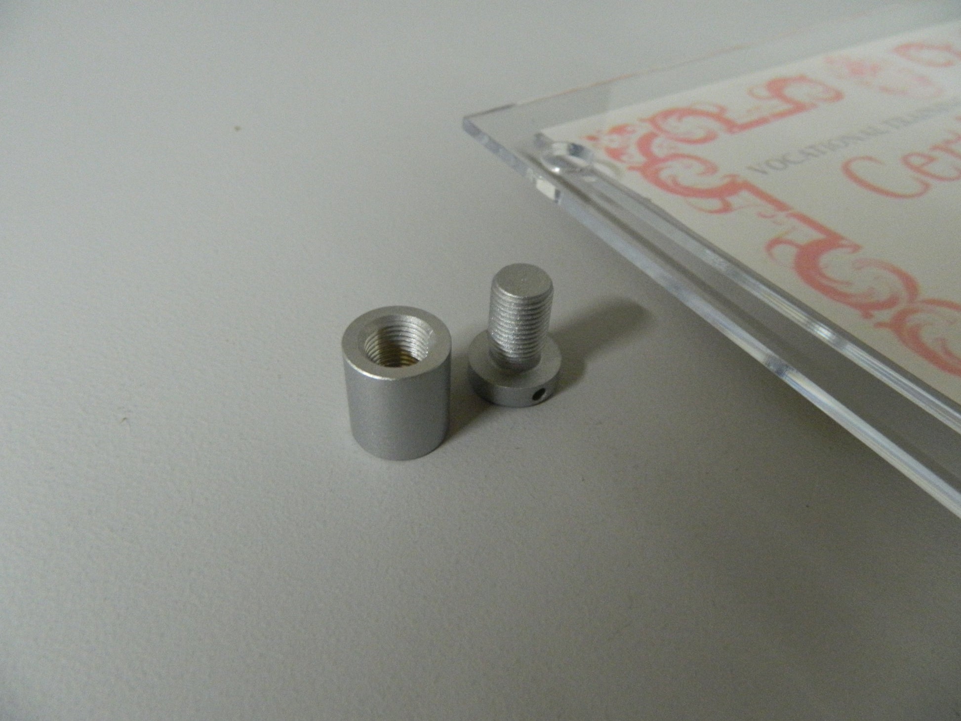 - Opened from the back, a single sheet of paper or thin card is protected between the folded clear acrylic.